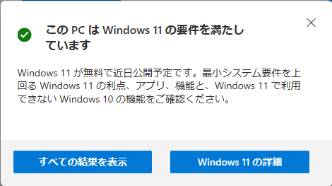 「このPCは、Windows11をインストールするための最小システム要件を満たしていません」